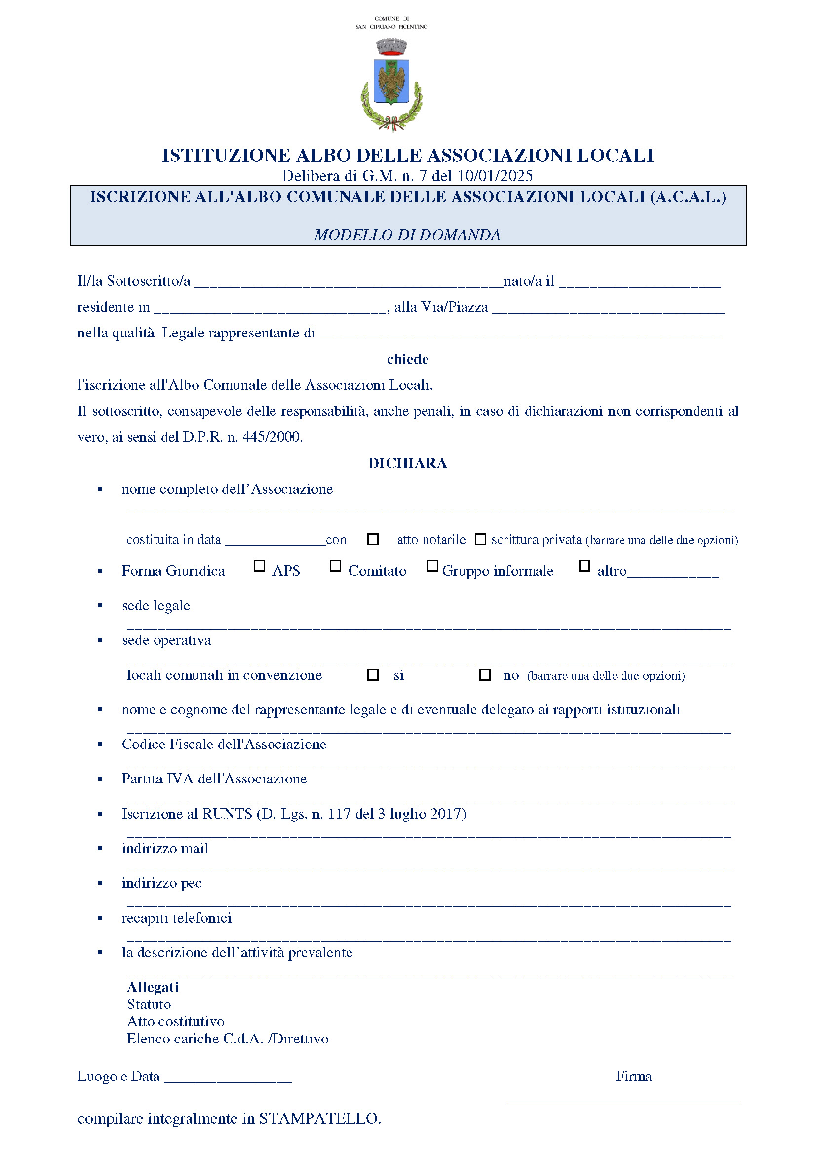 ALBO DELLE ASSOCIAZIONI LOCALI - AVVISO ADESIONI ANNO 2026